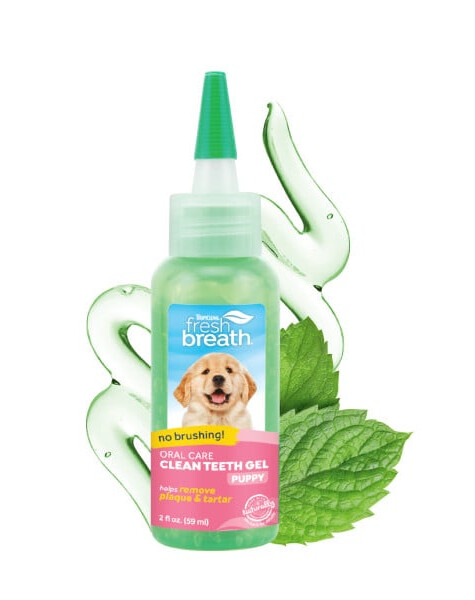 CLEAN Teeth - ei vaja harjamist! Mint-Fresh Puppy suuhügieenigeel on õrn puhastusvahend, mis eemaldab hambakivi, hambakivi ja halba hingeõhku põhjustavad bakterid, et suu oleks tervislikum.