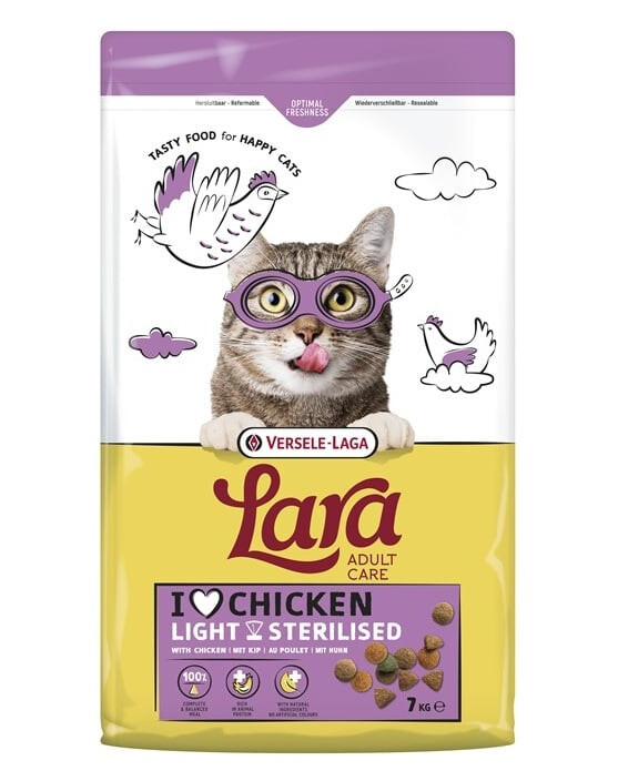 Lara Adult Light Sterilized kana on suurepäraselt tasakaalustatud toit täiskasvanud kassidele, kes on steriliseeritud või elavad rahulikumat eluviisi. Tagab optimaalse energia koguse ning aitab säilitada õiget kaalu ilma maitsest loobumata, mida kassid armastavad.