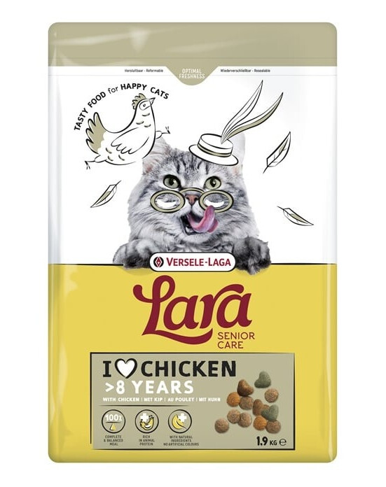 Lara Senior on täisväärtuslik, tasakaalustatud kuivtoit kanaga, mis on spetsiaalselt välja töötatud vanematele kassidele alates 7. eluaastast. Selle koostis on loodud toetama keha küpses eas — see pakub sobivaid proportsioone valke, rasvu, vitamiine ja mineraale, mis aitavad säilitada elujõudu ja head seisundit vanematel kassidel.