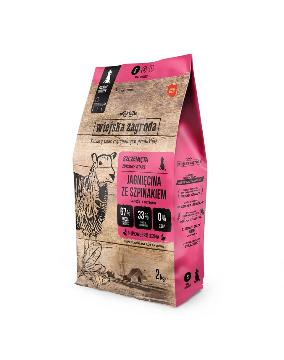 Lamb is delicate and healthy. It is distinguished by its content of linoleic acid, which inhibits cancer processes. The addition of lean turkey and protein-rich chicken makes an excellent menu for a young puppy. We also added spinach - rich in vitamin C and magnesium - essential during the challenging period of puppyhood, as well as folic acid – invaluable support for the nervous system. It's a healthy start for your pet!