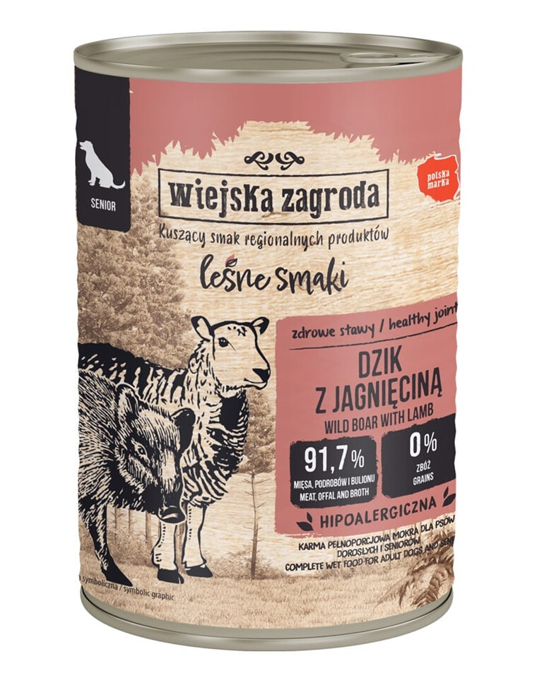 WIEJSKA ZAGRODA Metsamaitsed metssiga ja lambaliha märgtoit vanematele koertele 400 g
