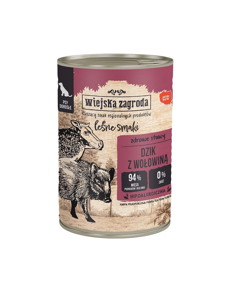 WIEJSKA ZAGRODA Metsamaitsed Metssiga ja veiseliha 24x400 g märgtoit täiskasvanud koertele