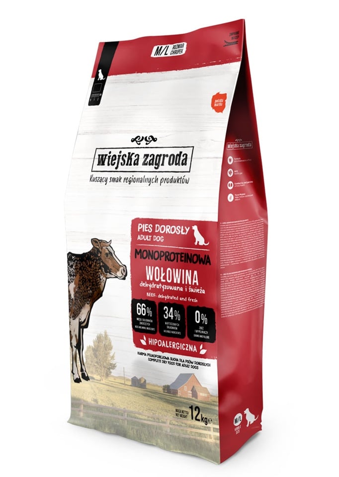 WIEJSKA ZAGRODA Monoproteiiniline veiseliha koerustele koertele M/L 2x12 kg