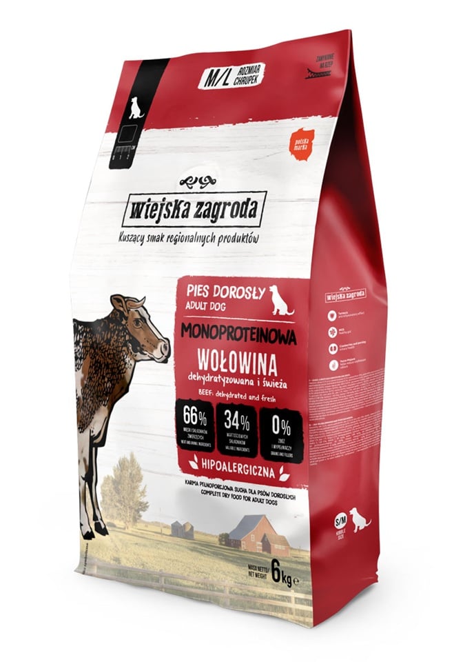 Monoproteiini toidud Wiejskiej Zagrody on tasakaalustatud toidud, mis on mõeldud tundliku seedetraktiga ja allergiatele kalduvatele koertele. Ainult ühe loomse valgu allika kasutamine, teraviljade ja kaunviljade puudumine vähendab toidureaktsioonide riski ning mitmed tervist toetavad lisandid aitavad kaasa normaalsele seedimisele ja võivad leevendada allergiast või korduvatest seedimisprobleemidest tingitud põletikke. Toidu koostisosad toetavad ka naha tervist ja liigesehaiguste ennetamist.