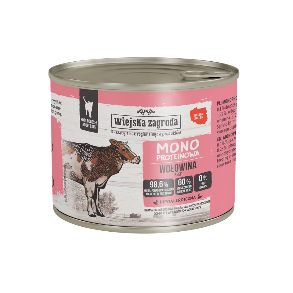 WIEJSKA ZAGRODA Monoproteiiniline veiseliha märgtoit kassidele 12x200 g