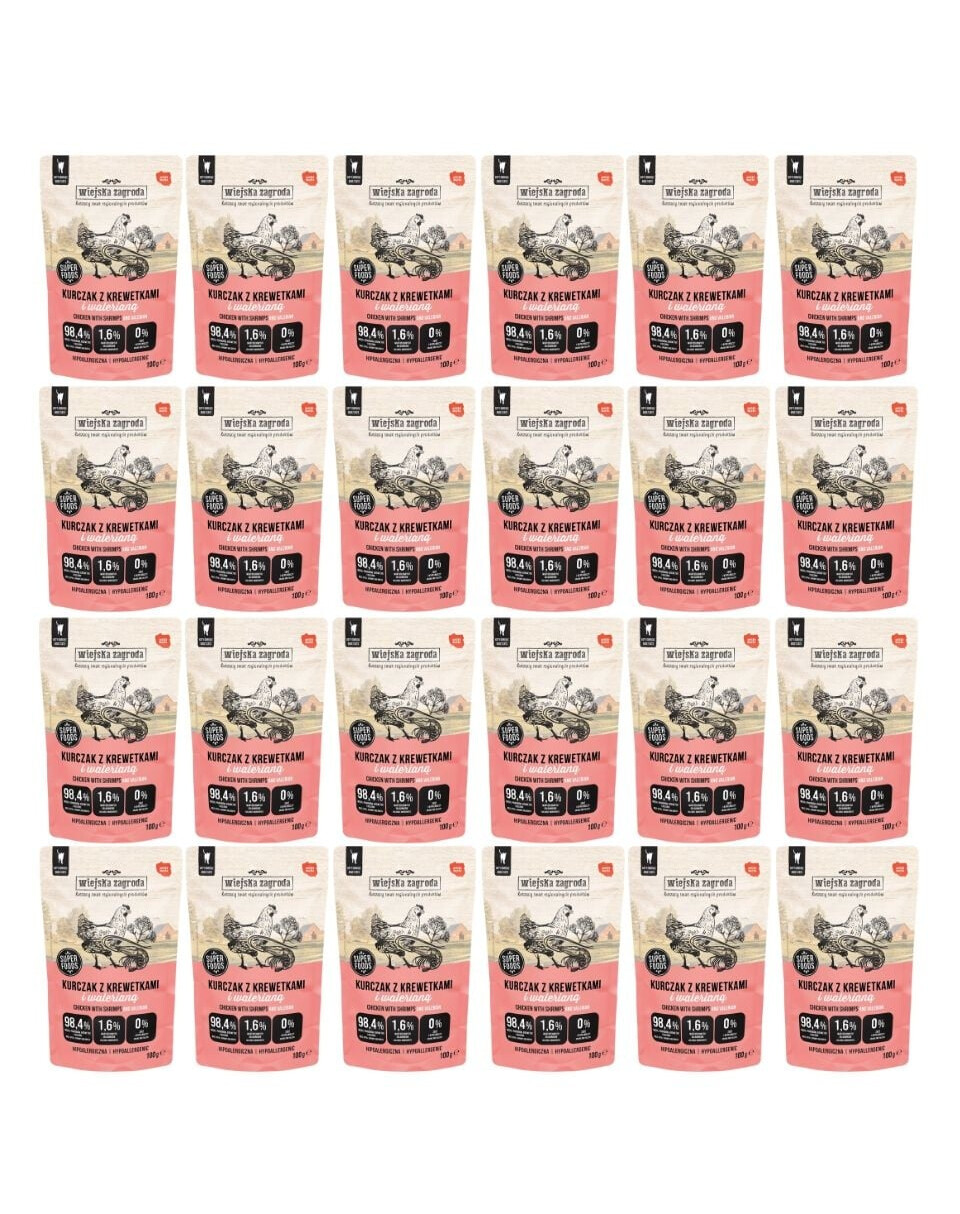 WIEJSKA ZAGRODA Superfoods Kana ja krevetid ja valerianaga niiske toit kassidele 24x100 g