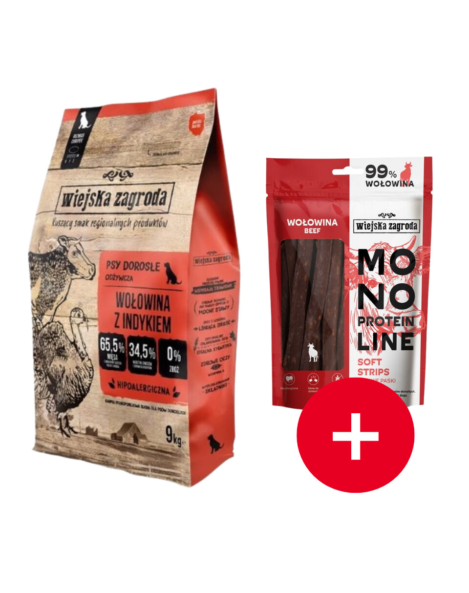 WIEJSKA ZAGRODA Beef koos kalkuniga on täistoit suurematele koeratõugudele.