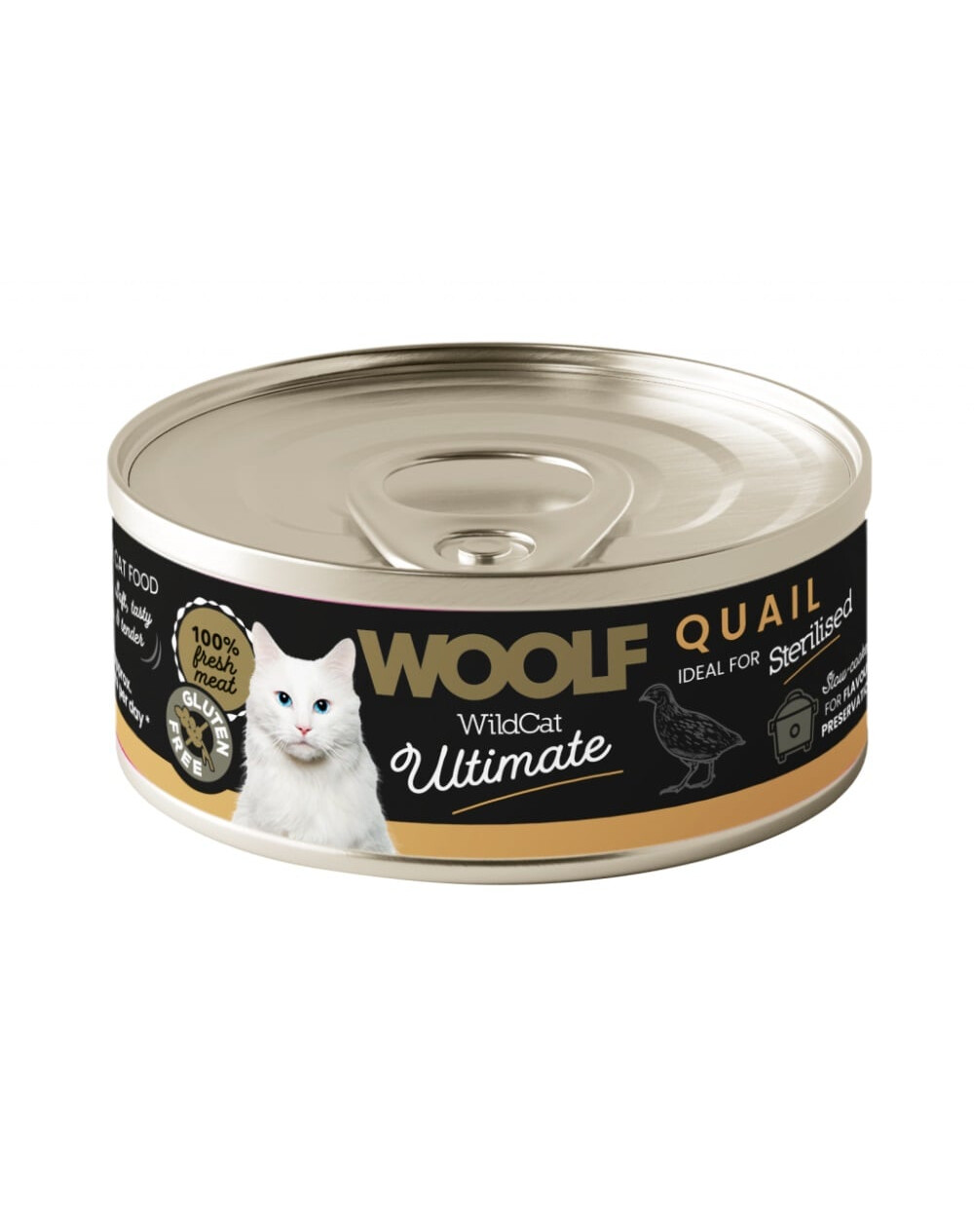 WOOLF Ultimate Cat Adult Sterilised Quail on täisväärtuslik, gluteenivaba märg toit pehme pastetina, mis on välja töötatud täiskasvanud kassidele pärast steriliseerimist või kastreerimist. Peamine koostisosa on küülik – mahlane, kergesti seeditav liha, mis on rikas hädavajalike toitainete poolest, toetades organismi normaalset toimimist ja optimaalse kehakaalu säilitamist.